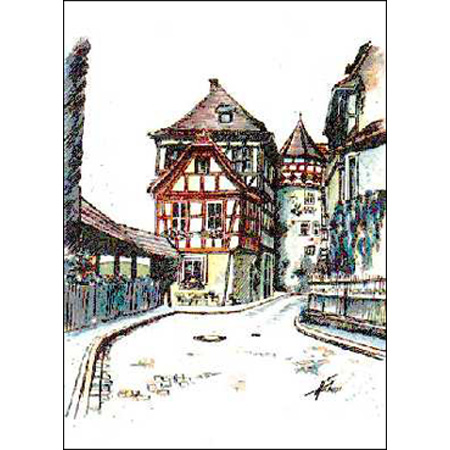 (Tusche - Aquarelltechnik).