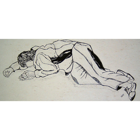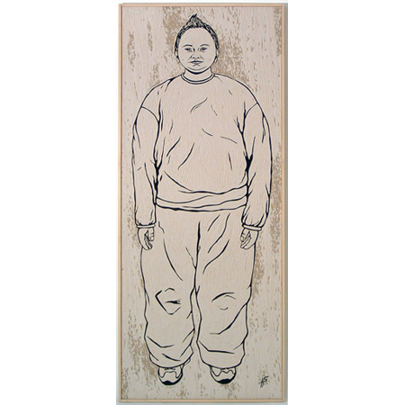 Der bearbeitete Linolboden selbst dient als Ausdrucksmittel.